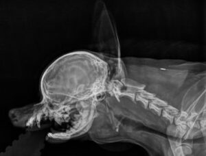 Röntgenkuvissa todettiin lähes koko matkaltaan selkeästi laskeutunut henkitorven rakenne ja erittäin ahtautunut nielun rakenne johtuen ylipitkästä ja juurestaan paksusta kielen rakenteesta, synnynnäisesti ylipitkästä etuosastaan kaareutuvasta kuonon yläosan rakenteesta, sekä suhteessa liian pienestä alaleuasta.